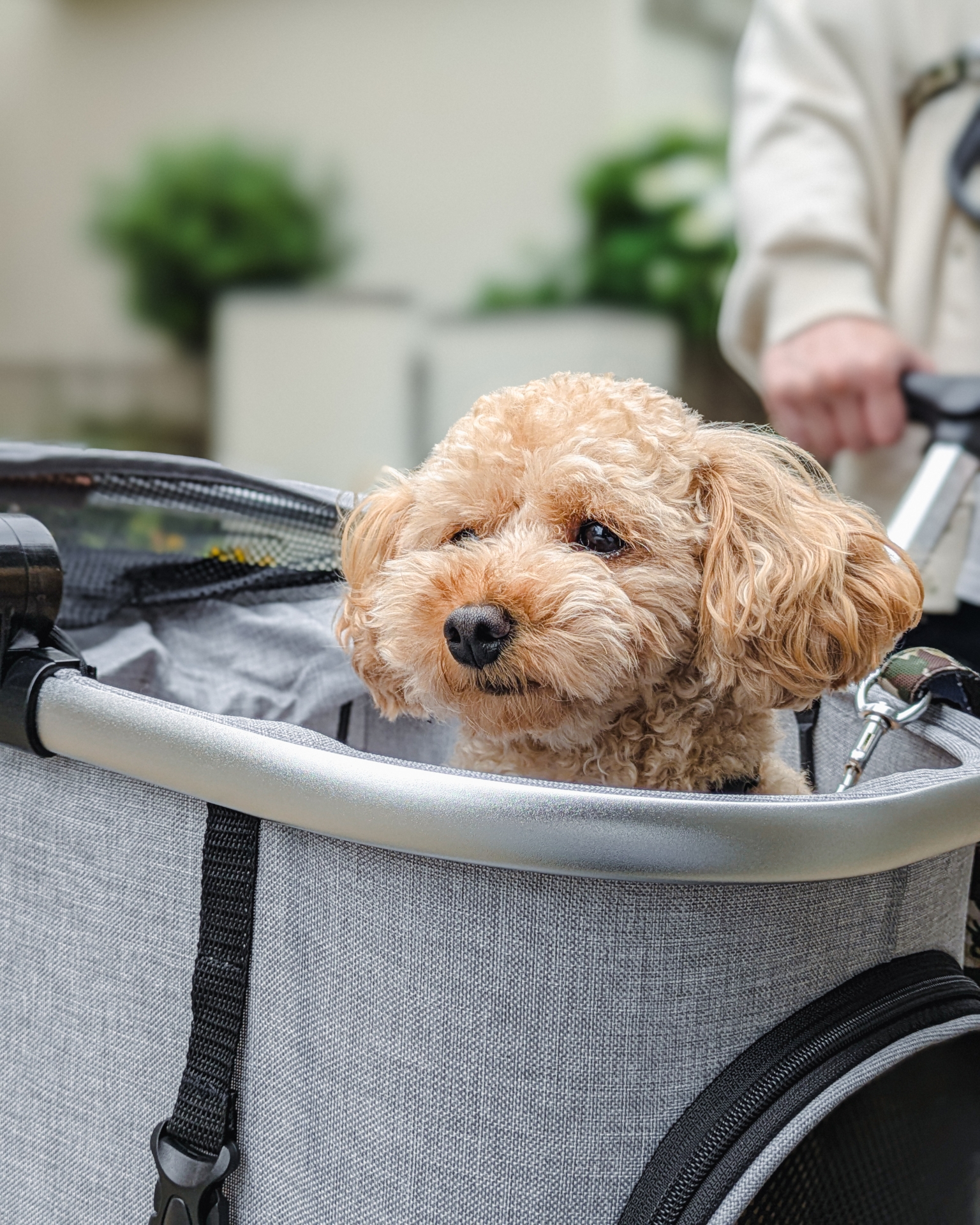 通院はもちろん、電車やバスなどの公共交通機関を利用する際は「ケージやバッグに入れること」を条件としている事業者が多く、バッグの有無がそのまま移動可否に直結します。ショッピングモールやペット同伴可の店舗でも“抱っこもしくはキャリーイン”がルール化されているケースが増えており、バッグがあるだけで入店・移動・待ち時間のストレスを大きく減らせます。特にシニア犬は、長距離を歩かせるよりもバッグで安静を保つほうが体調を崩しにくく、飼い主にとっても両手が自由になるため安全確保がしやすくなります。さらに、タクシーやレンタカーでも、毛や汚れの付着を防ぐ観点からキャリー利用が歓迎されることが多く、結果として外出の自由度が広がります。