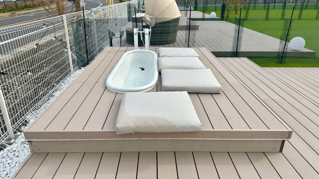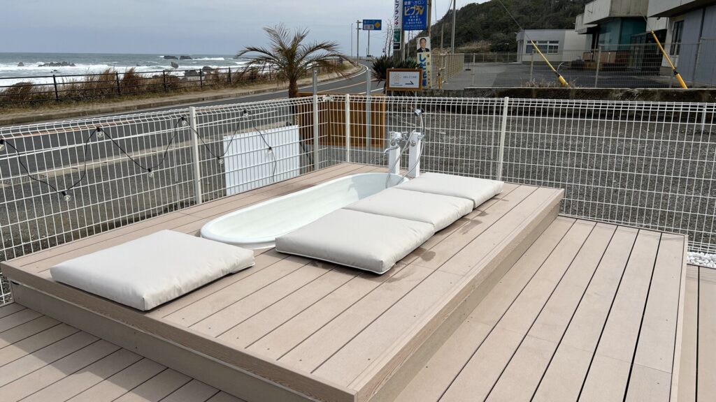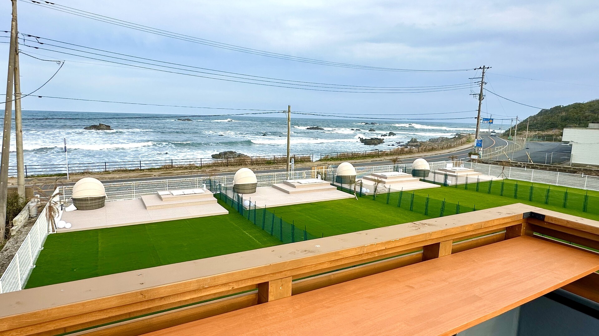 犬吠埼エリアは“日本で最も早く朝日を拝める”スポットの一つ。施設では宿泊者専用の足湯で温まりながら、裏手の約5m高台やデッキから水平線のドラマを楽しめます。夜明け前の群青から黄金色に染まるまで、部屋に戻らず“温かいまま”眺められるのが贅沢。朝活派のワンちゃん散歩とも相性抜群です!