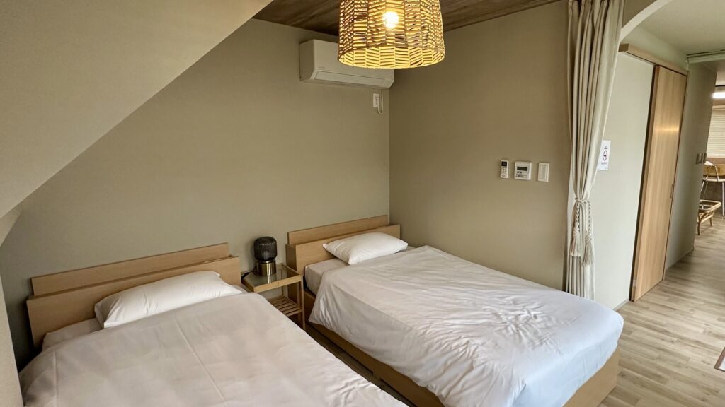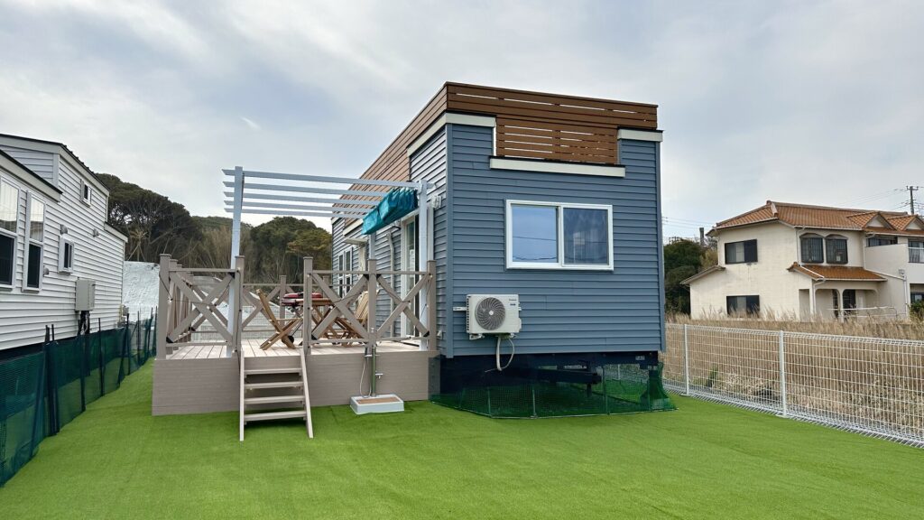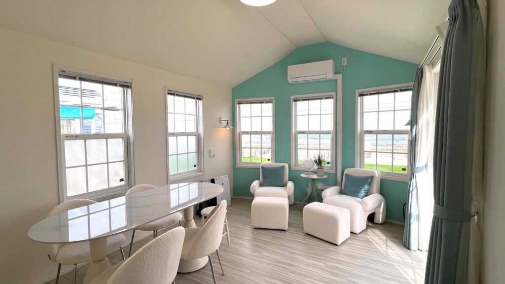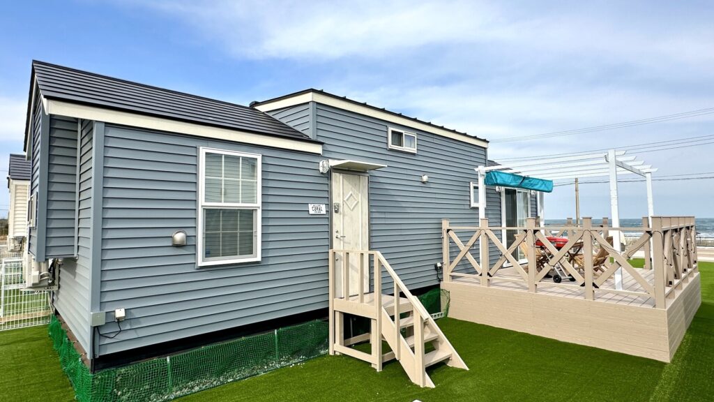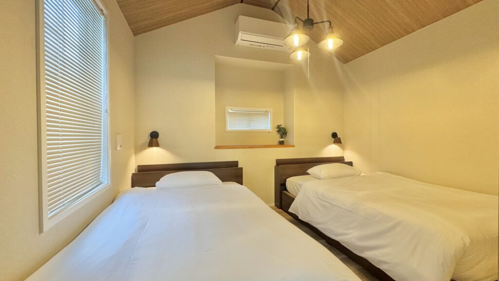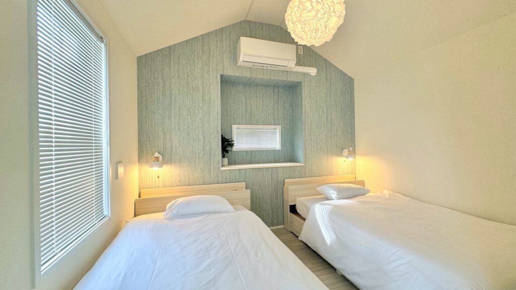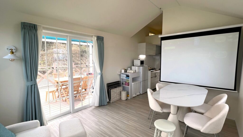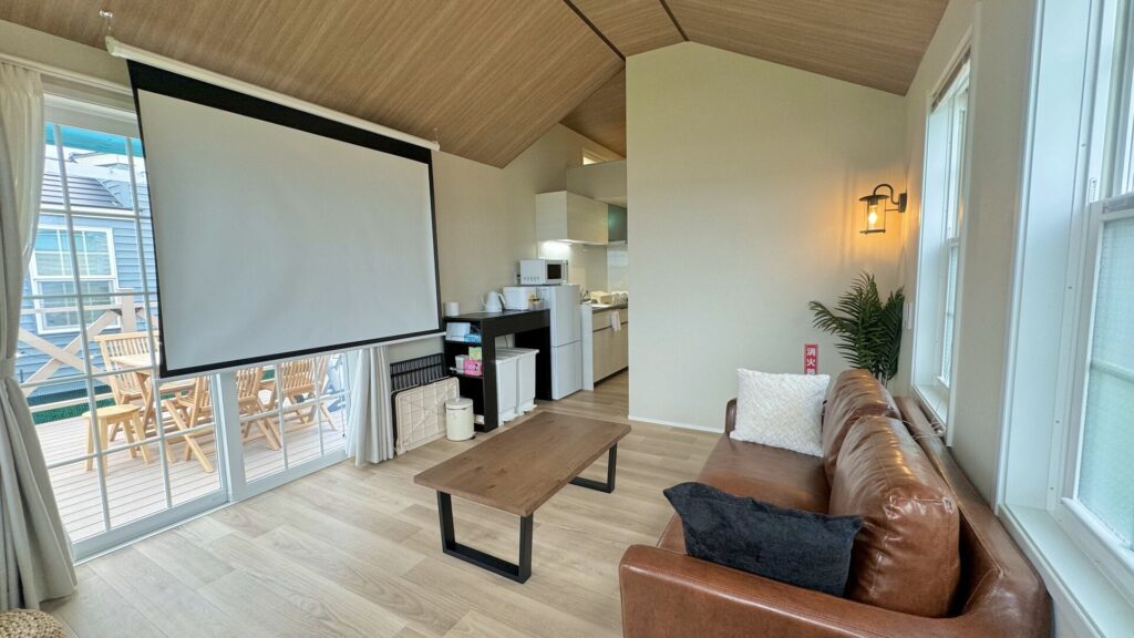 各棟テラスにガス式BBQグリルを標準装備。炭・ボンベの持参不要で、火起こしのストレスなし。提携のBBQワキタを使えば事前注文→当日お届けで、厚切り肉や野菜を“焼くだけ”でOK(雨天時は利用制限あり)。リモートロックでチェックインも非接触、室内は抗菌防臭コーティングで清潔に保たれています。