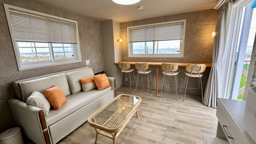 • ワンちゃんがソファーベッドをご使用する場合はペットシーツをご利用ください。万が一客室で汚してしまった場合はご連絡ください。状況によりクリーニング費用を頂く場合がございます。