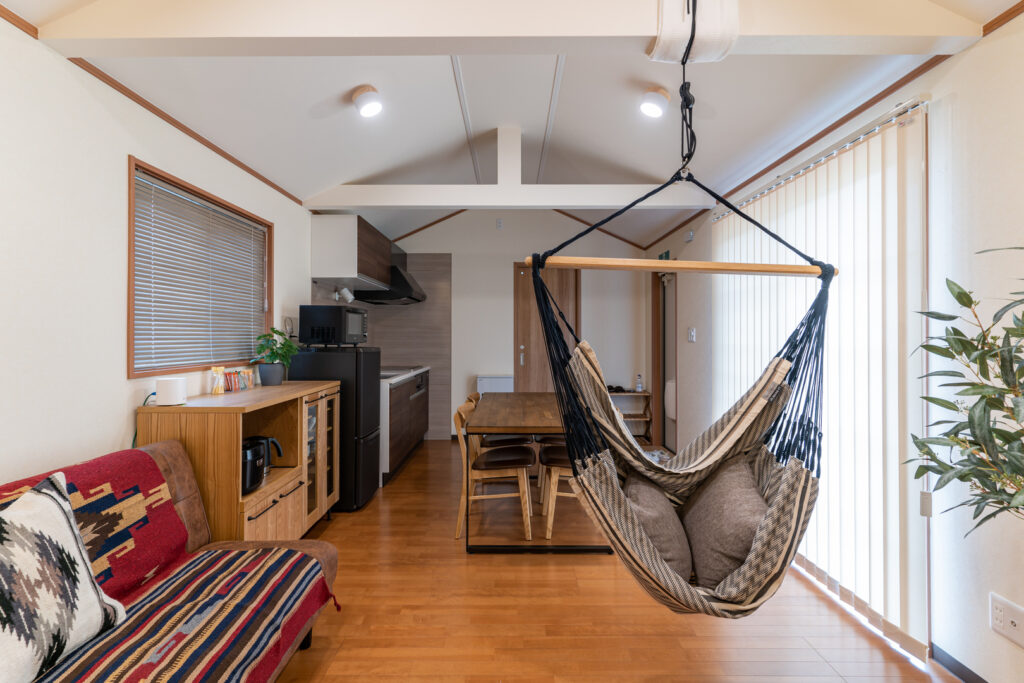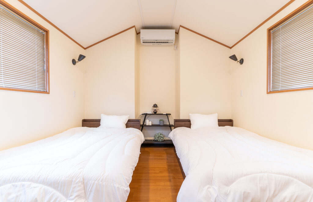 犬の宿泊料金は何頭でも無料。各棟にプライベートドッグランを備え、隣棟との間は高さ120cmの仕切り網で安心。犬用アメニティもそろい、到着直後から思い切り遊べます。リモートロックで非接触チェックイン、室内の次世代抗菌防臭コーティングで匂い残りにも配慮。多頭・人見知りの子でも過ごしやすい環境です。