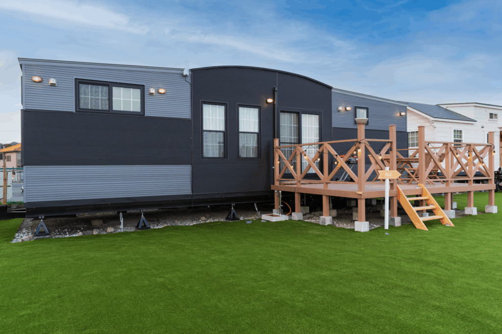 駐車場台数 | トレーラハウス裏手に無料の市営駐車場がございますので そちらをご利用ください。 ※管理棟と3棟並んだトレーラーハウスの間の道から歩いて抜けれます。 尚、お荷物を運ばれる際は管理棟と宿泊施設の間に止めて頂けます。 |