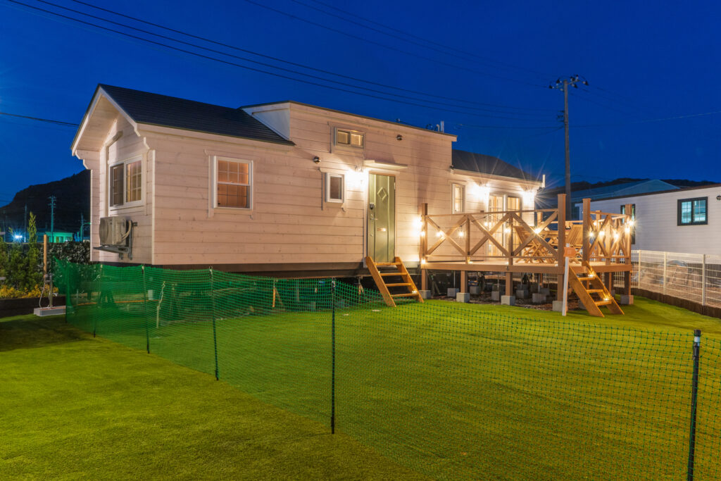 車 | アクアライン海ほたるPAより約1時間20分 千葉市内より約1時間20分 トレーラハウス裏手に無料の市営駐車場がございますので そちらをご利用ください。 ※管理棟と3棟並んだトレーラーハウスの間の道から歩いて抜けれます。 尚、お荷物を運ばれる際は管理棟と宿泊施設の間に止めて頂けます。 |